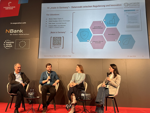Sichere und vertrauenswürdige KI-Systeme könnten im internationalen Wettbewerb zum Qualitätsversprechen deutscher KI-Entwicklung werden. Neben IT-Sicherheit sind Datenschutz, ethische Verantwortung und der Schutz vor Missbrauch entscheidend. Gleichzeitig müssen KI-Systeme wirtschaftlich wettbewerbsfähig bleiben. Wie kann dies gelingen? Welche Ansätze gibt es in Forschung und Entwicklung im Bereich sicherer KI in Deutschland? Wie stark gibt der AI Act den Gestaltungsrahmen vor? Dazu diskutierten Mitglieder der Plattform Lernende Systeme auf einem Panel auf der Hannover Messe 2025.
