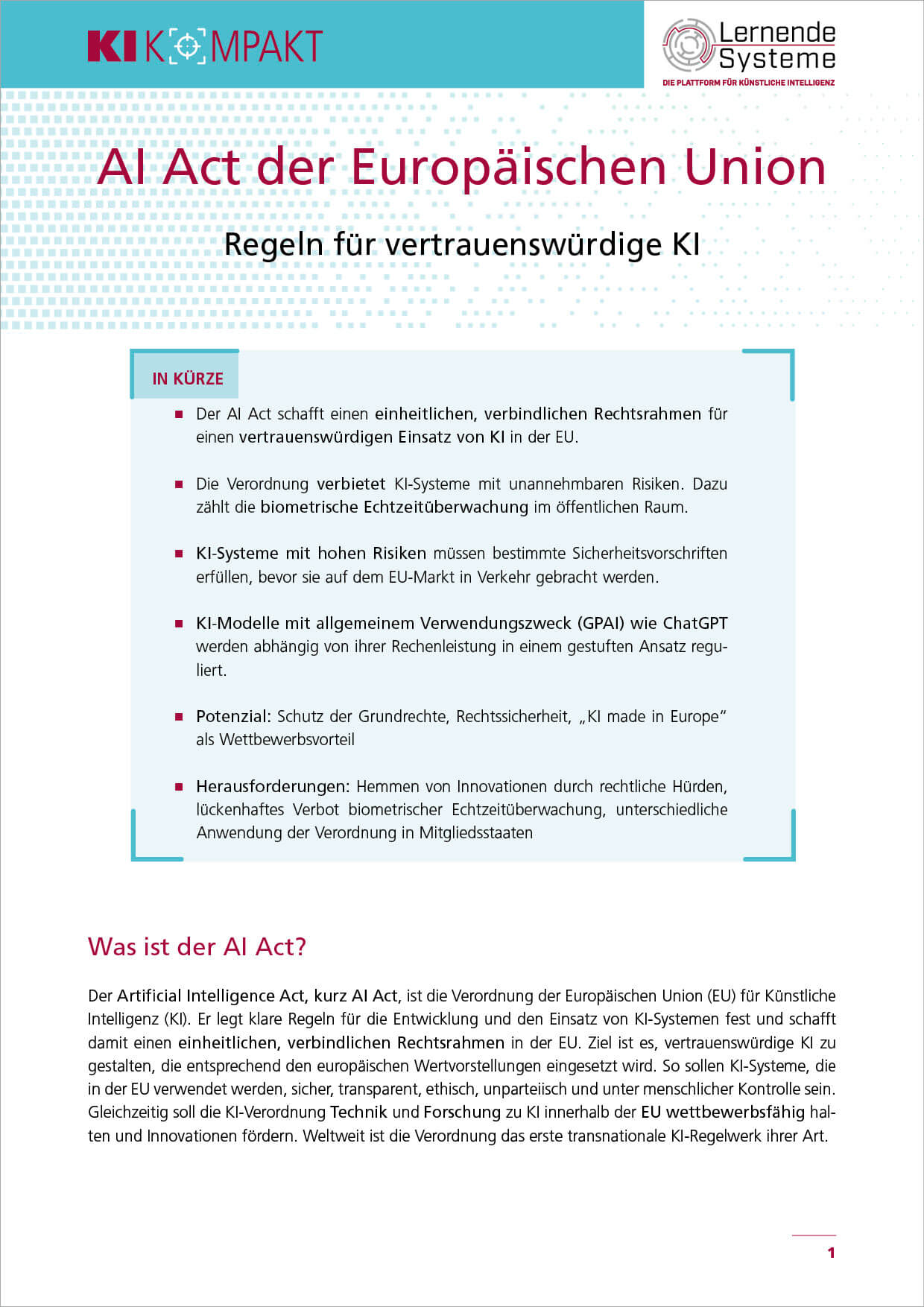 - Das Handelsblatt fasst die wichtigsten Punkte der neuen europäischen KI-Verordnung zusammen.