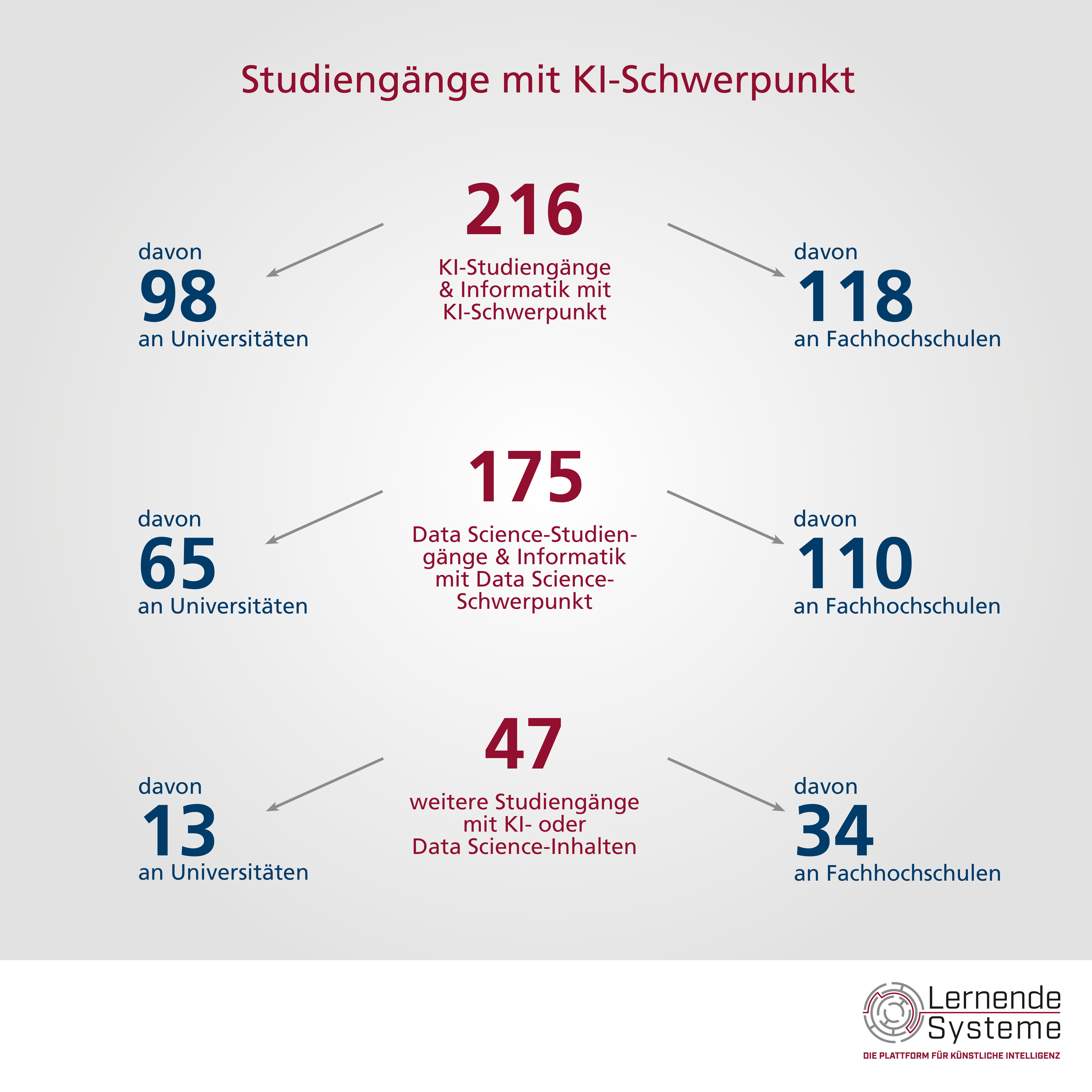 Hier finden Sie Grafiken aus dem KI-Monitoring als Download. Alle Dateien sind für eine redaktionelle Verwendung freigegeben (bei Nennung der Quelle © Plattform Lernende Systeme).